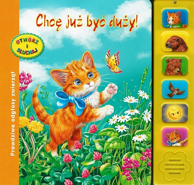 Mały kotek chciałby być już duży, nie chce, by go nazywano maluchem. Czy znajdzie na to sposób? Tę sympatyczną historyjkę urozmaicą prawdziwe odgłosy zwierząt. Wystarczy otworzyć książeczkę i zacząć opowieść... Używajcie przycisków i słuchajcie dźwięków.