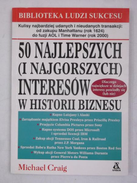 Na okł. podtyt.: dlaczego największe w dziejach interesy powiodły się (lub nie) : kulisy najbardziej udanych i nieudanych transakcji - od zakupu Manhattanu (rok 1624) do fuzji AOL i Time Warner (rok 2000).